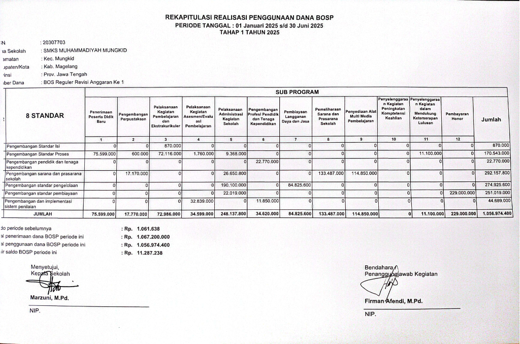 Realisasi penggunaan dana BOSP tahap 1 tahun 2025